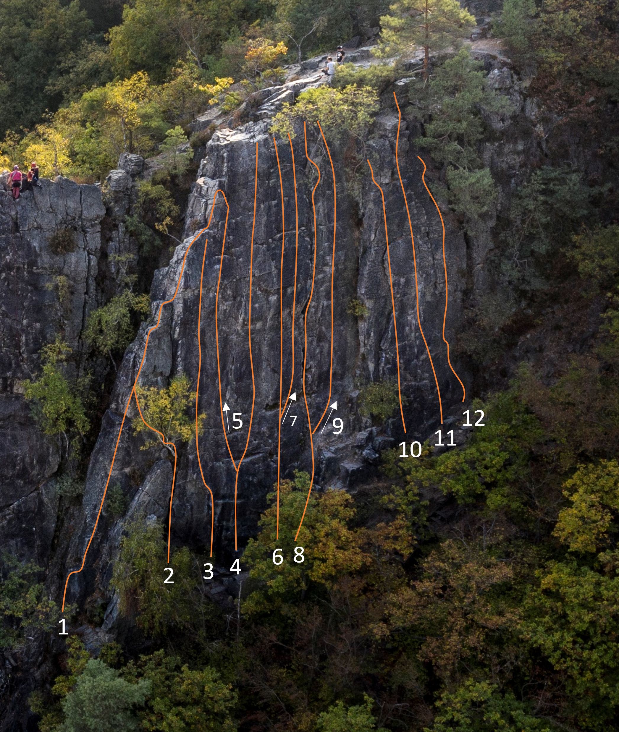 Voraussetzung ist jedoch Erfahrung in der Sicherungstechnik. Der Umgang mit mobilen Sicherungsgeräten (Friends, Klemmkeile u.ä.) ist in vielen Routen von Vorteil. Nur wenige Routen sind ohne Vorstieg als Toprope geeignet.